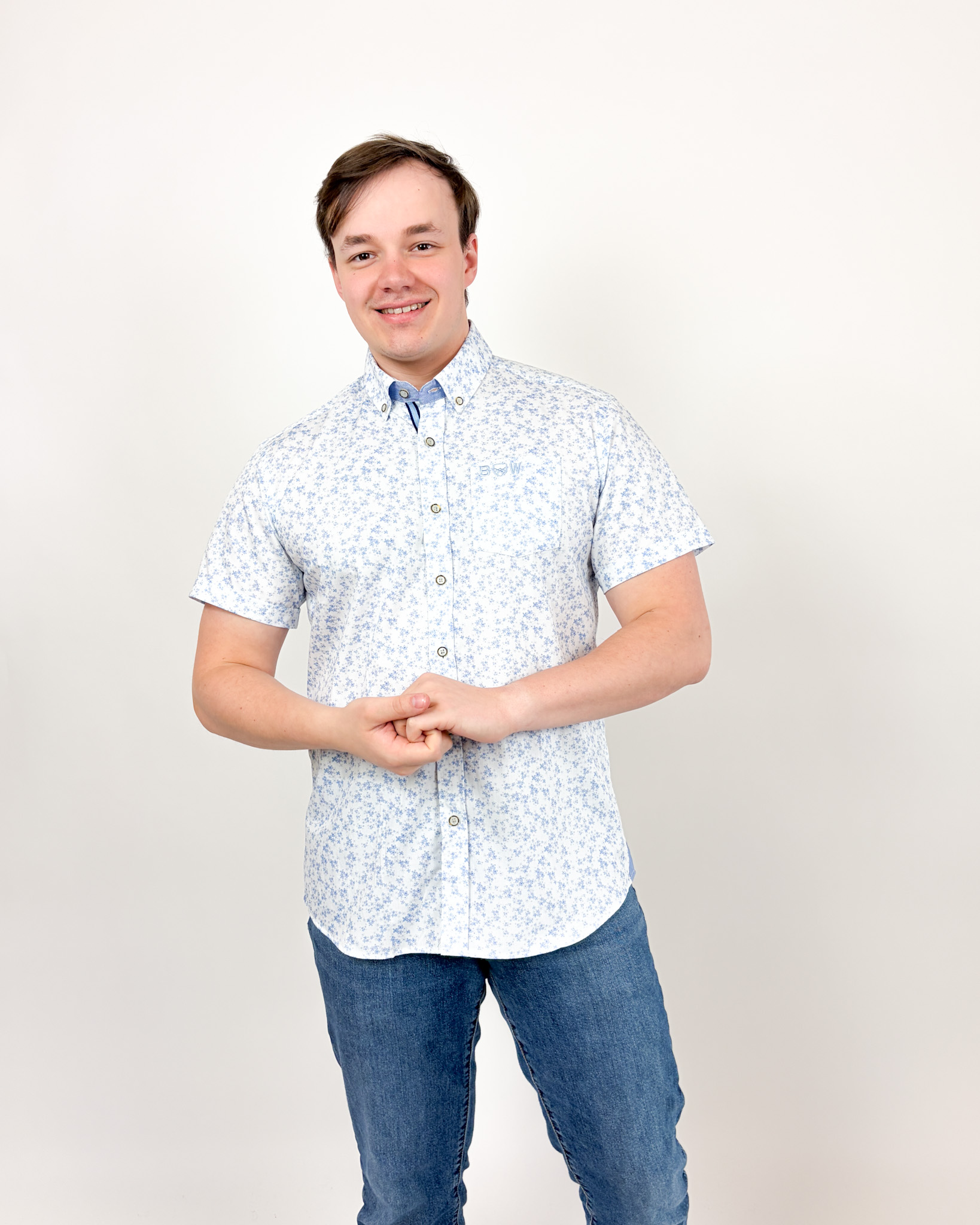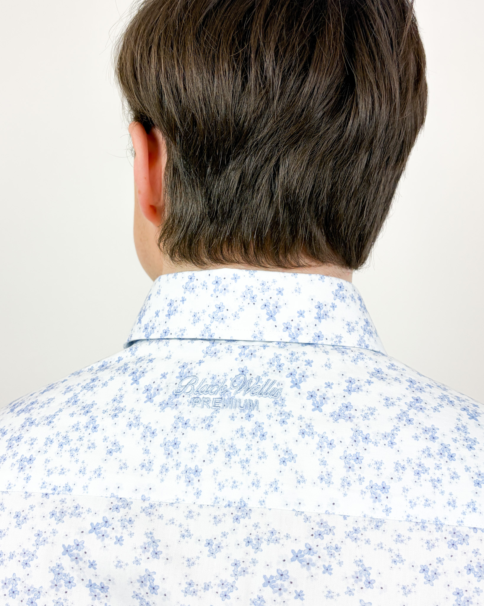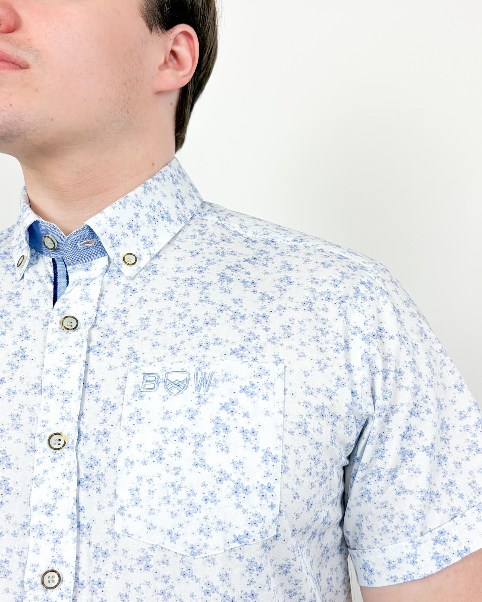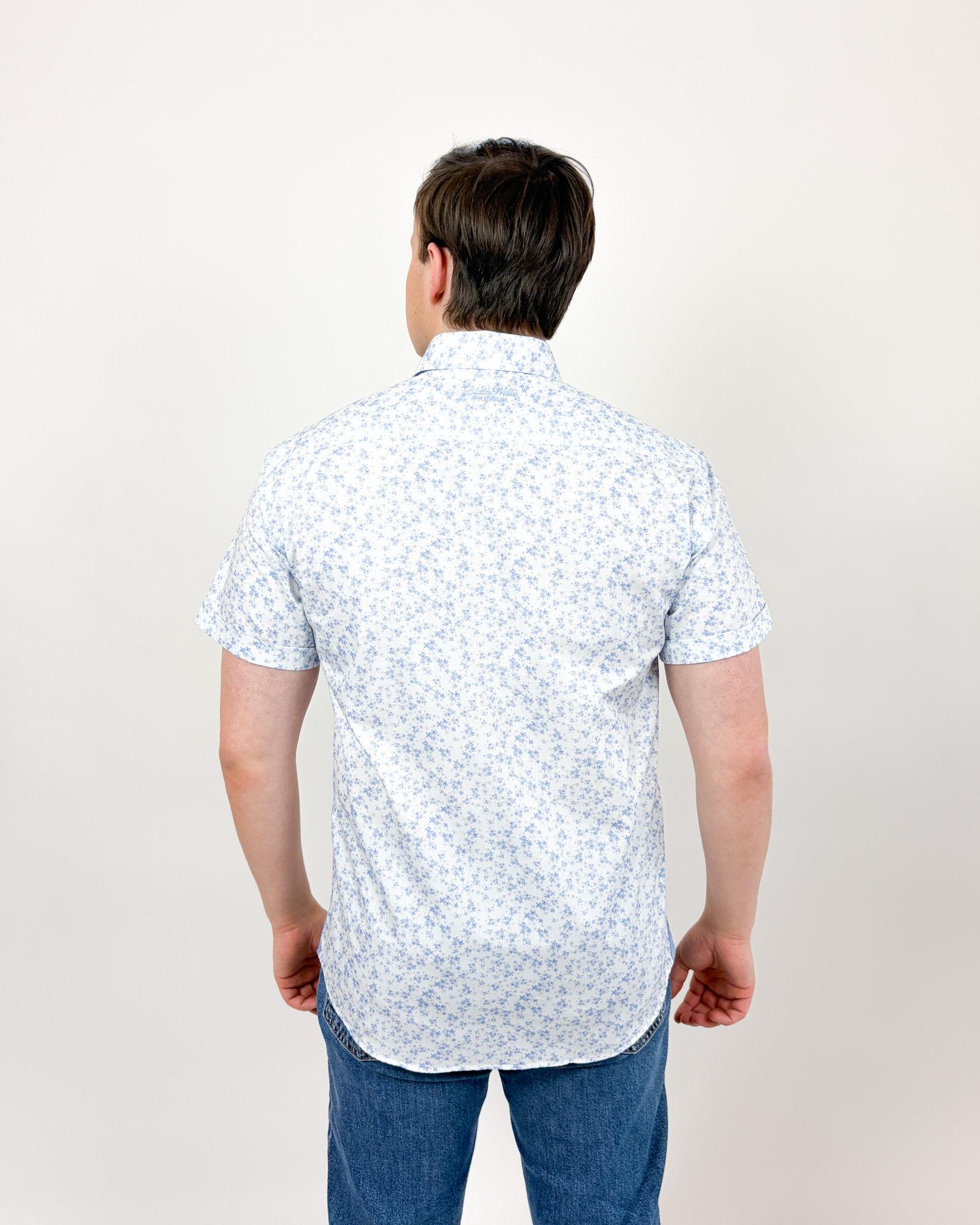 Chemise Ernest à manches courtes – Blanc imprimé floral ciel